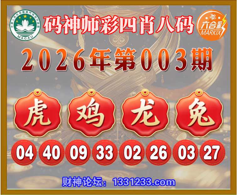 003期:〖码神师彩〗 🍏四肖八码🍏【虎鸡龙兔】开:鸡09准