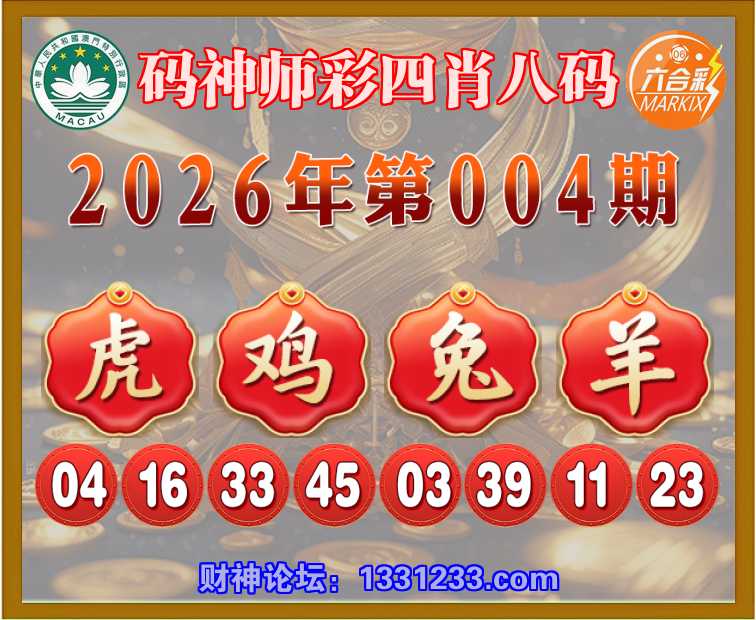 004期:〖码神师彩〗 🍏四肖八码🍏【虎鸡兔羊】开:鸡45准