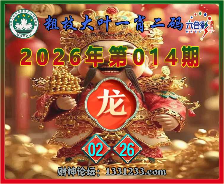 014期:〖粗枝大叶〗 ♥️一肖二码♥️【龙】【02.26】开:龙26准