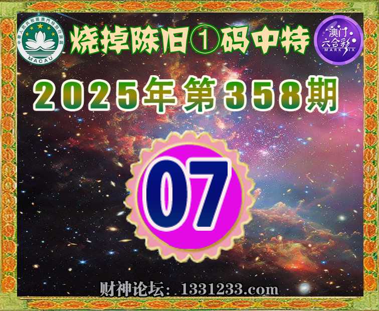 358期:【烧掉陈旧】 🚡①码中特🚡【07】开:07准