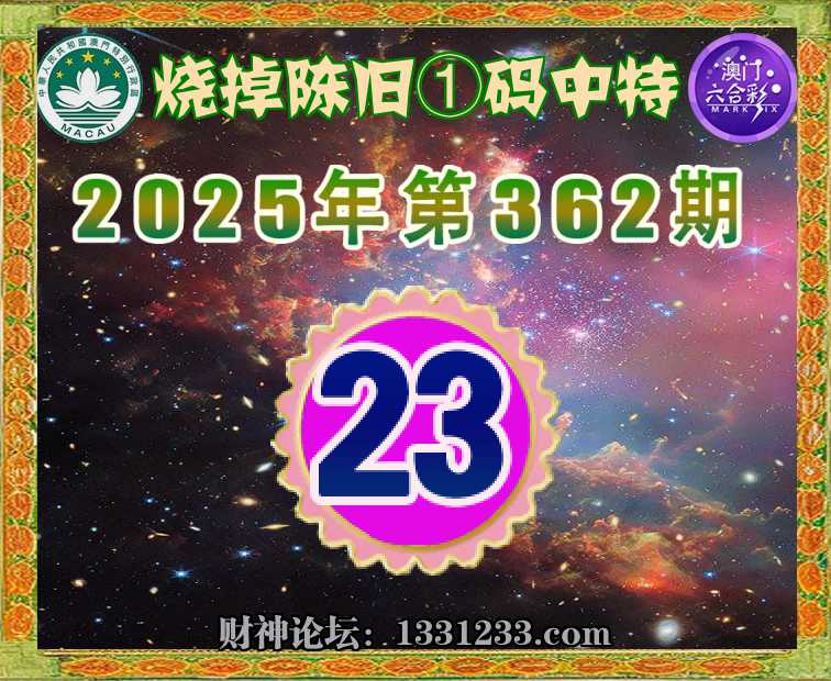 362期:【烧掉陈旧】 🚡①码中特🚡【23】开:23准