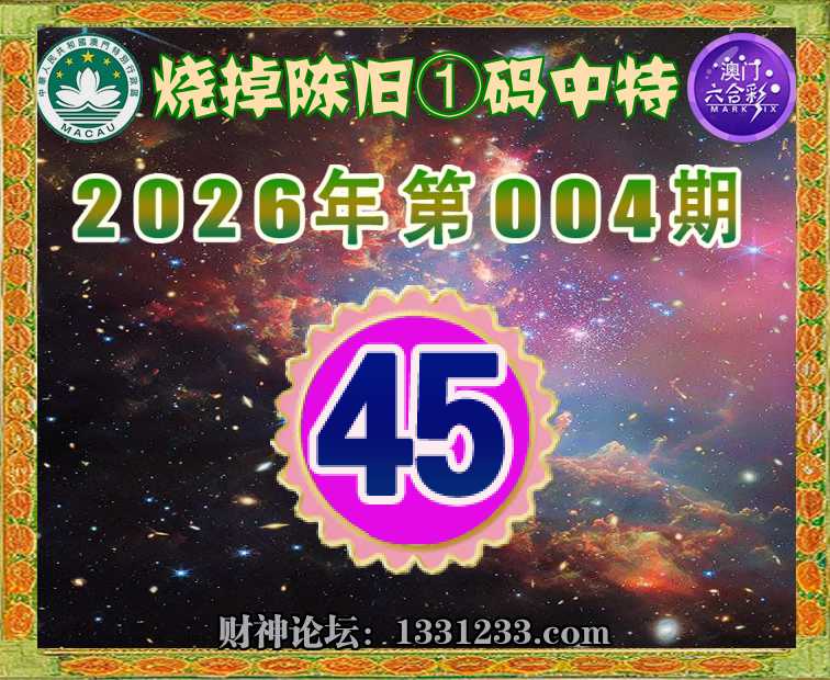 004期:【烧掉陈旧】 🚡①码中特🚡【45】开:45准
