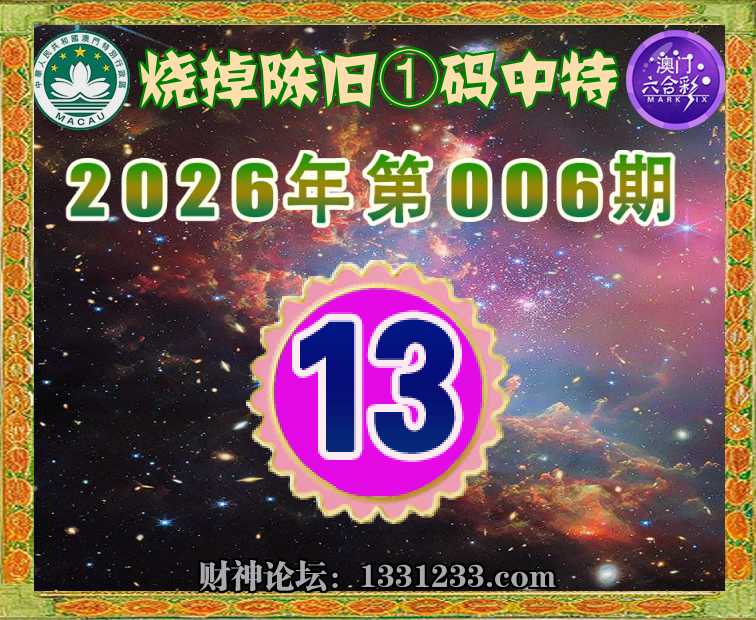 006期:【烧掉陈旧】 🚡①码中特🚡【13】开:13准