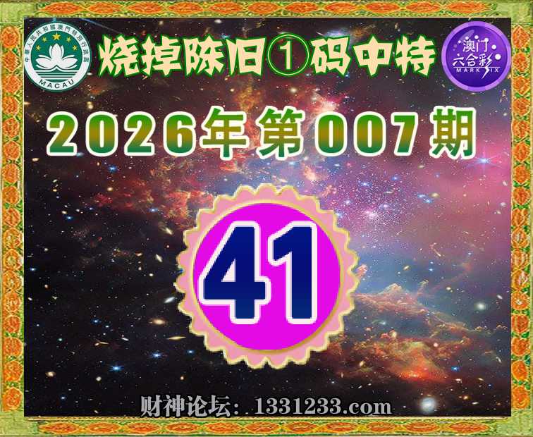 007期:【烧掉陈旧】 🚡①码中特🚡【41】开:41准