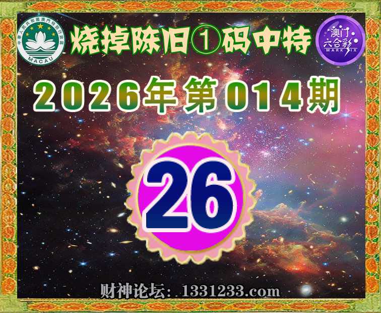 014期:【烧掉陈旧】 🚡①码中特🚡【26】开:26准