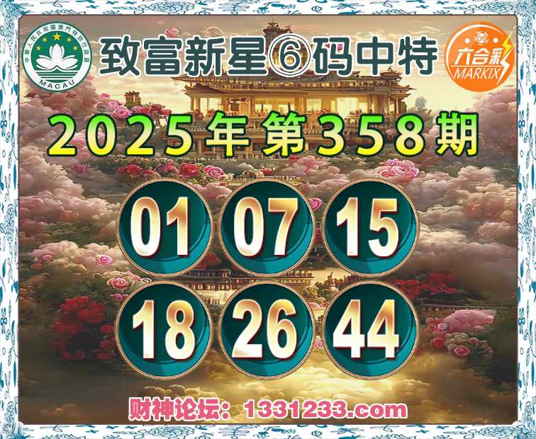 358期:【致富新星】⑥码中特⚽【01.07.15.18.26.44】开:07