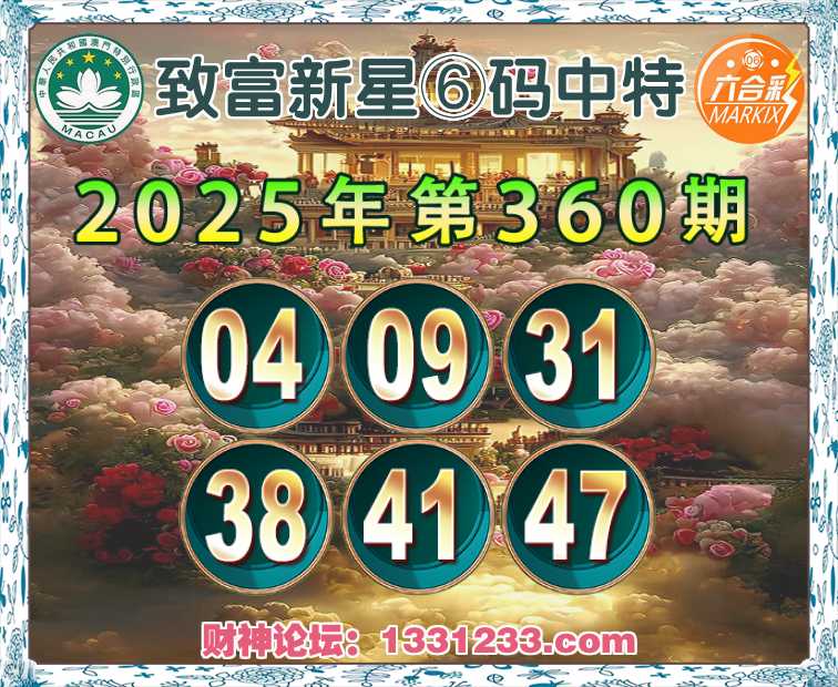 360期:【致富新星】⑥码中特⚽【04.09.31.38.41.47】开:41