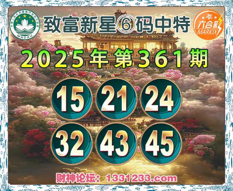361期:【致富新星】⑥码中特⚽【15.21.24.32.43.45】开:24