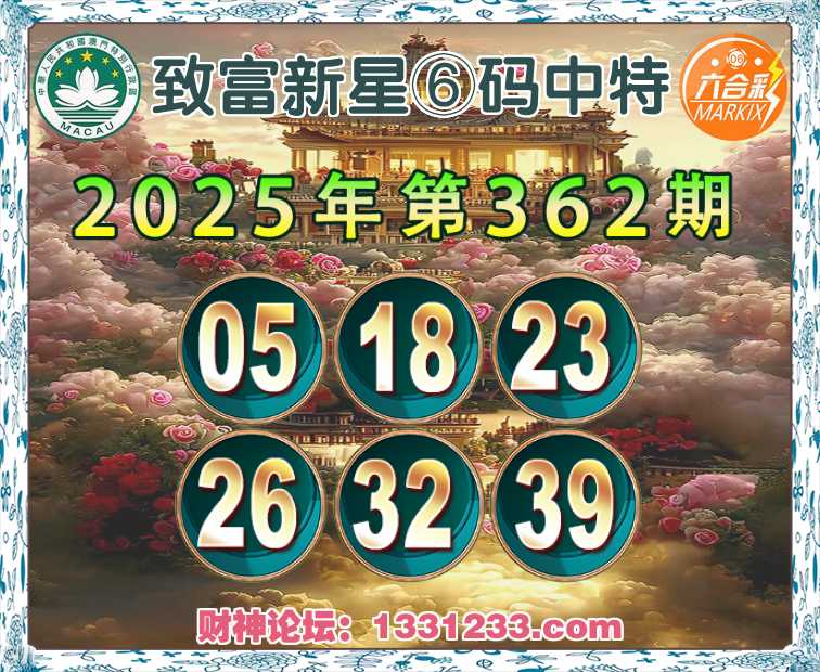 362期:【致富新星】⑥码中特⚽【05.18.23.26.32.39】开:23