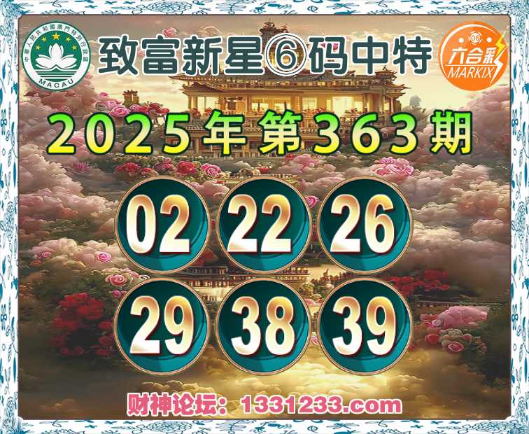 363期:【致富新星】⑥码中特⚽【02.22.26.29.38.39】开:26
