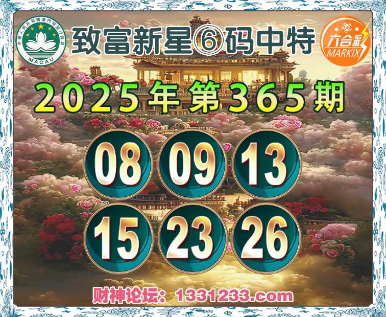 365期:【致富新星】⑥码中特⚽【08.09.13.15.23.26】开:26