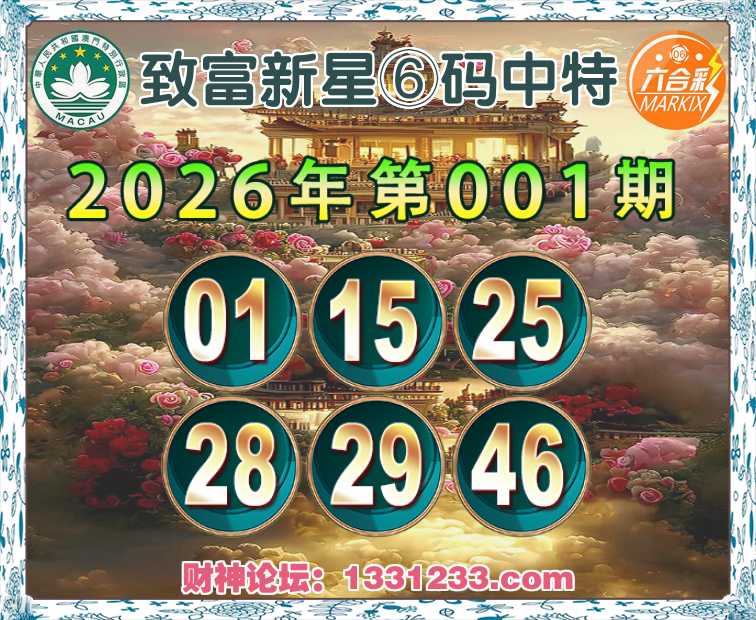 001期:【致富新星】⑥码中特⚽【01.15.25.28.29.46】开:29