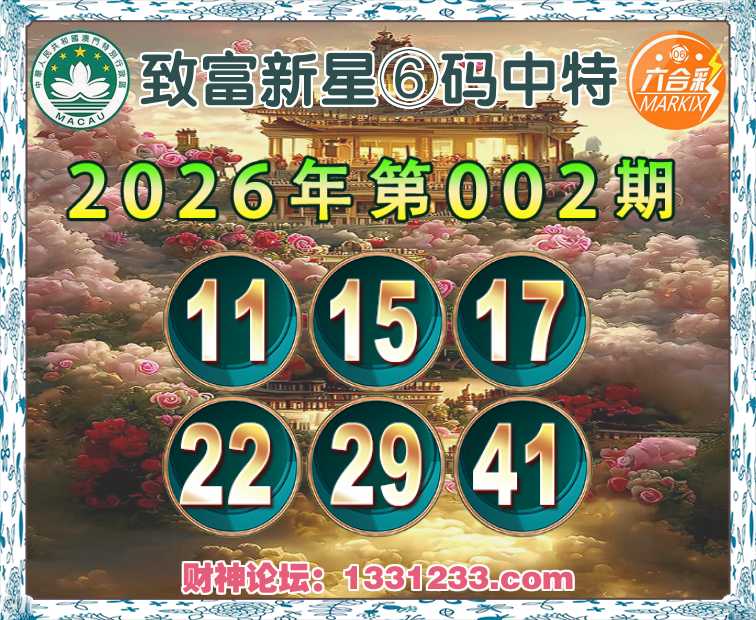 002期:【致富新星】⑥码中特⚽【11.15.17.22.29.41】开:22