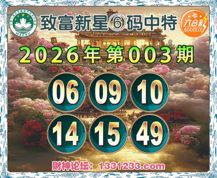 003期:【致富新星】⑥码中特⚽【06.09.10.14.15.49】开:09