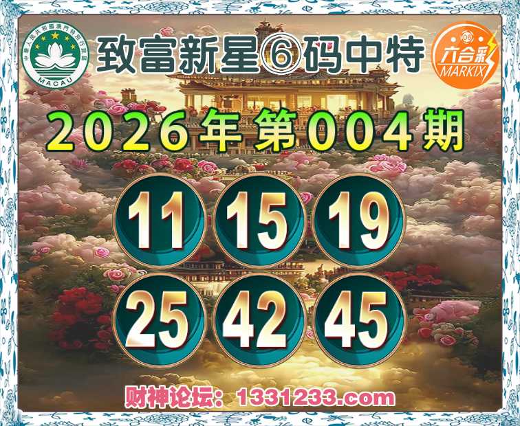 004期:【致富新星】⑥码中特⚽【11.15.19.25.42.45】开:45