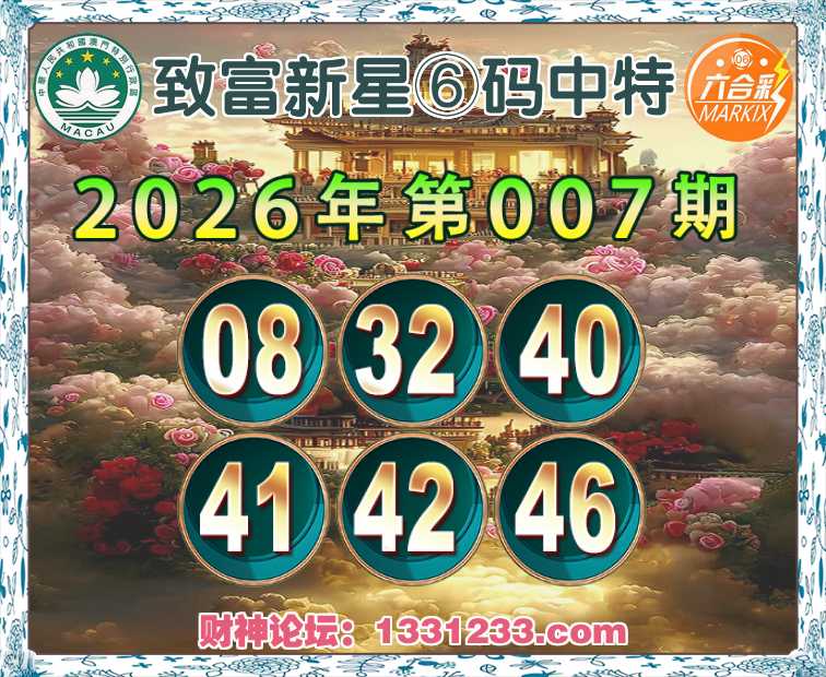 007期:【致富新星】⑥码中特⚽【08.32.40.41.42.46】开:41