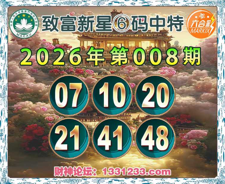 008期:【致富新星】⑥码中特⚽【07.10.20.21.41.48】开:21
