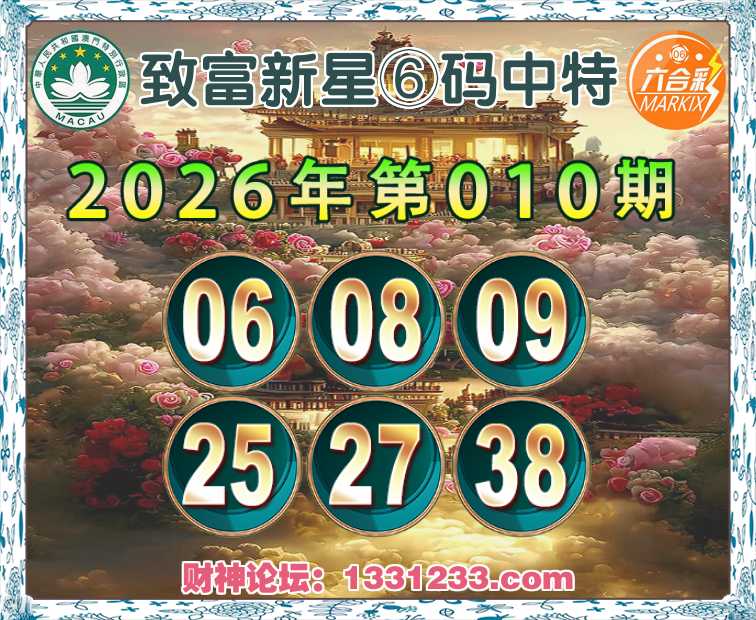 010期:【致富新星】⑥码中特⚽【06.08.09.25.27.38】开:27