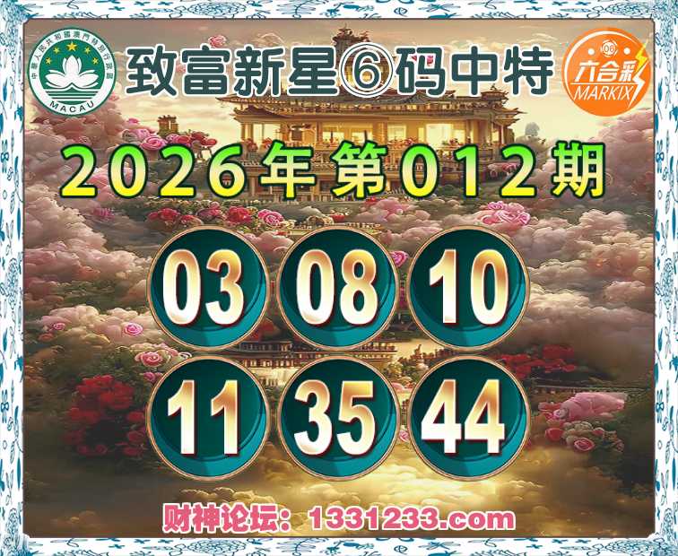 012期:【致富新星】⑥码中特⚽【03.08.10.11.35.44】开:11