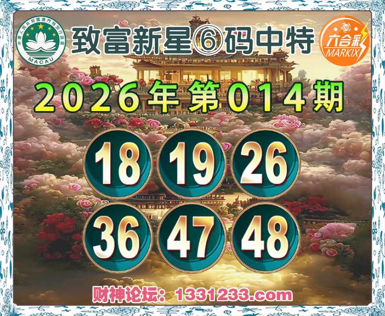 014期:【致富新星】⑥码中特⚽【18.19.26.36.47.48】开:26