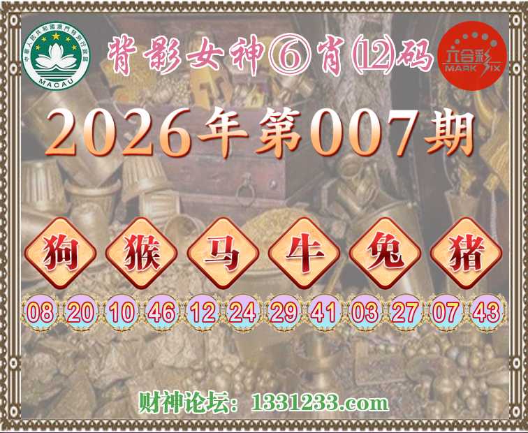 007期:【背影女神】 🎆⑥肖⑿码🎆【狗猴马兔猪】开:牛41